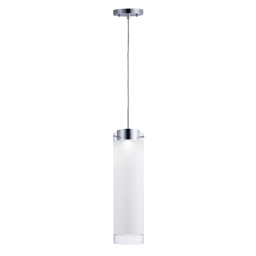 High tech LED modules are encased in die-cast housings finished in Polished Chrome. They support Frost glass cylinders with a Clear reveal on both ends. This classic design is a staple for contemporary pendants. Available in three sizes.