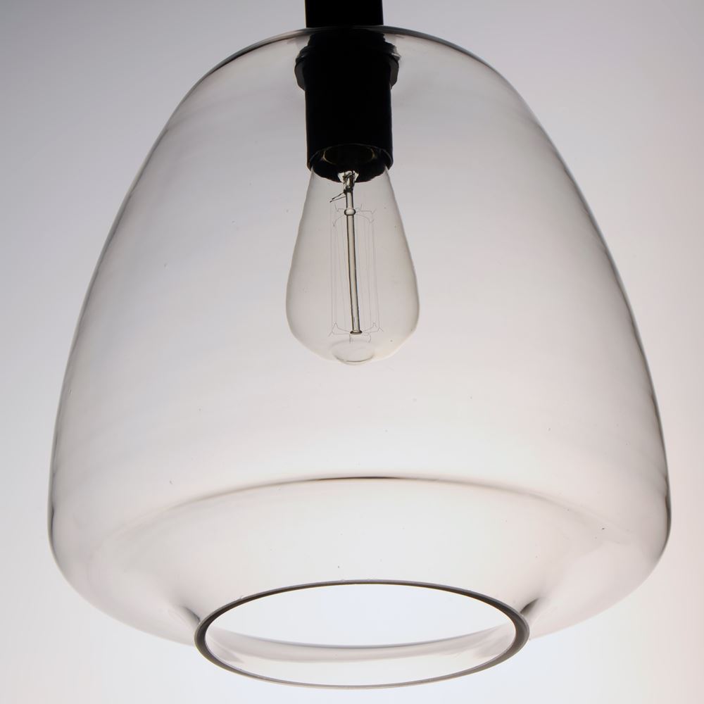 Pendants of Clear glass in unique elongated and undulating shapes with various sizes. This series pairs well with popular finishes in hardware and plumbing, giving you the flexibility to take chances with designer statement pieces. The metalwork is available in your choice of Matte Black, Satin Brass, or Satin Nickel. A coordinating wall sconce pairs well with the collection. Use filament bulbs to complete the look.