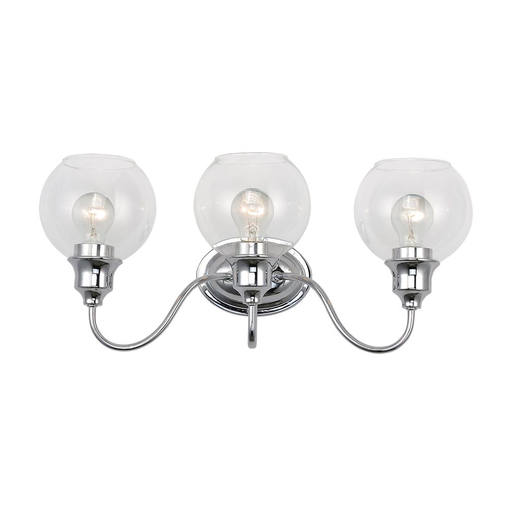 Curved arms support circular glass with an open bottom which can be installed facing up or down. Available in your choice of Polished Chrome with Clear glass or Satin Nickel with Satin White glass.