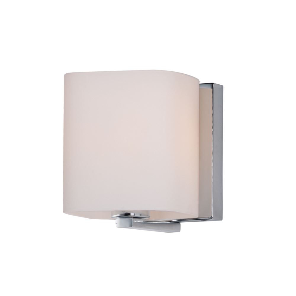 Satin White bands of cased glass wrap around each lamp creating a soft ribbon of light. Back plates finished in Polished Chrome or Satin Nickel complement the majority of bath fittings.