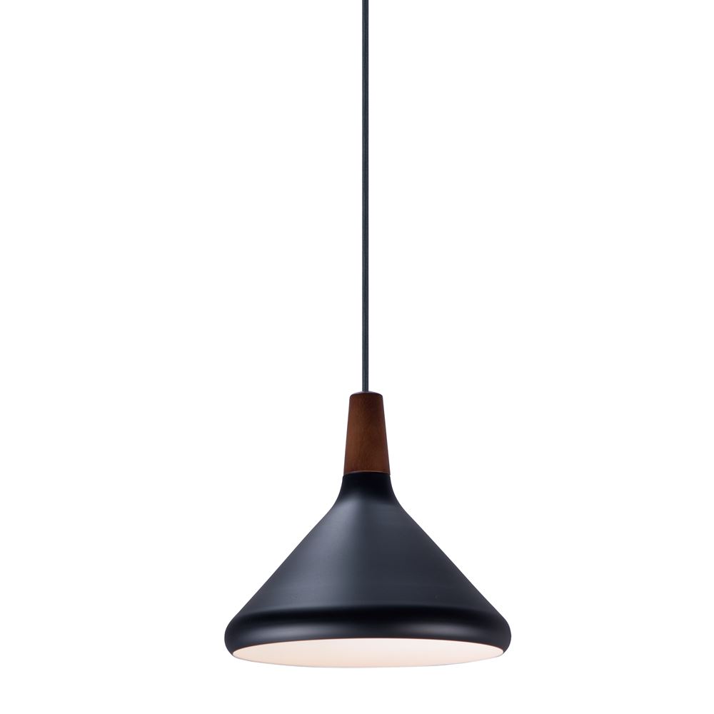 Inspired by classic Scandinavian design, these metal spun pendants of Black, White and Brushed Platinum feature mixed materials such as opal white glass or natural elements like Walnut finished wood and leather straps.