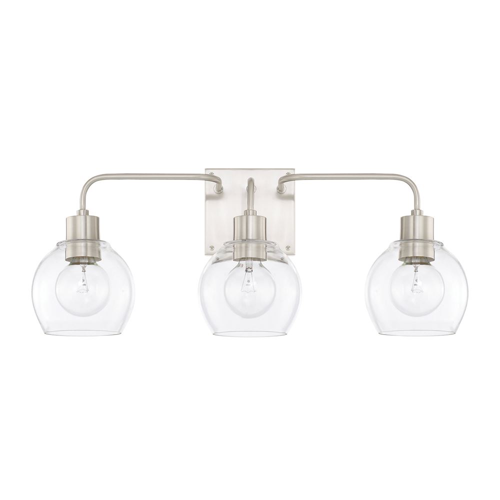 24.5" W x 10" H x 7" E 3-Light Clear Glass Vanity in Brushed Nickel