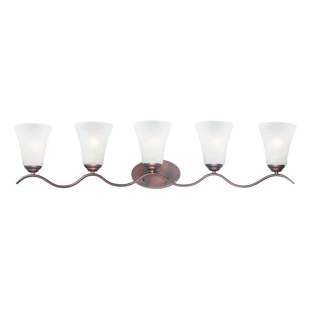 Gently waving arms of Satin Nickel or Oil Rubbed Bronze support tall-profile Frosted glass shades creating a scale normally not found in this category of lighting. The bath vanity may be installed up or down and also includes a Polished Chrome finish.