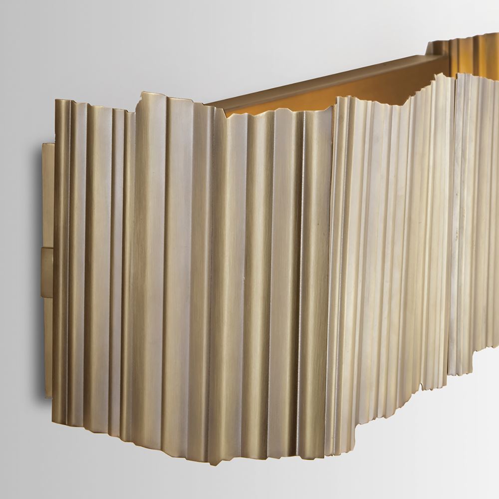 25" W x 7" H x 6" E 3-Light Vanity with Corrugated Metal Panels in Aged Brass