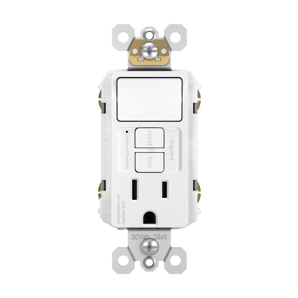 A step up from ordinary, this combination device features a compact switch with a tamper-resistant GFCI outlet. Ideal for use with vents in kitchens and baths, the code-compliant outlet self-tests automatically every three seconds to ensure reliable protection ground fault occurrences, and makes it easier to recognize and fix trips right where they happen - no more confusion at the breaker box. Part of the radiant Collection, it also features sleek, clean lines for a sophisticated look.