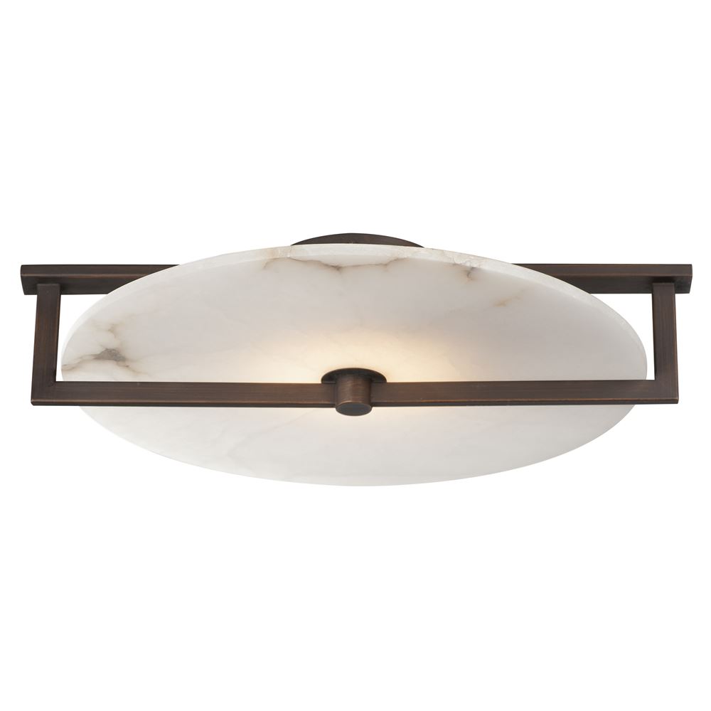 Modern, yet representative of the classic inverted bowl pendants, the Quarry collection features natural Spanish alabaster in an iron frame finished in Darkened Bronze. An inverted bowl form is created using the alabaster's straight line and the empty space below it. Slim housings of LED direct light both up at the alabaster to highlight the stone's character, while another direct light downward for functional use below.