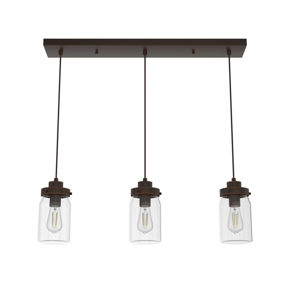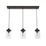 Subtle rustic detailing perfect for farmhouse spaces. Ball jar inspired glass shades on the Devon Park 3-light linear cluster light complete the look of coastal and farmhouse style spaces. Tailor the look for your space by varying the height of the mini pendant lights to fit your needs and style.