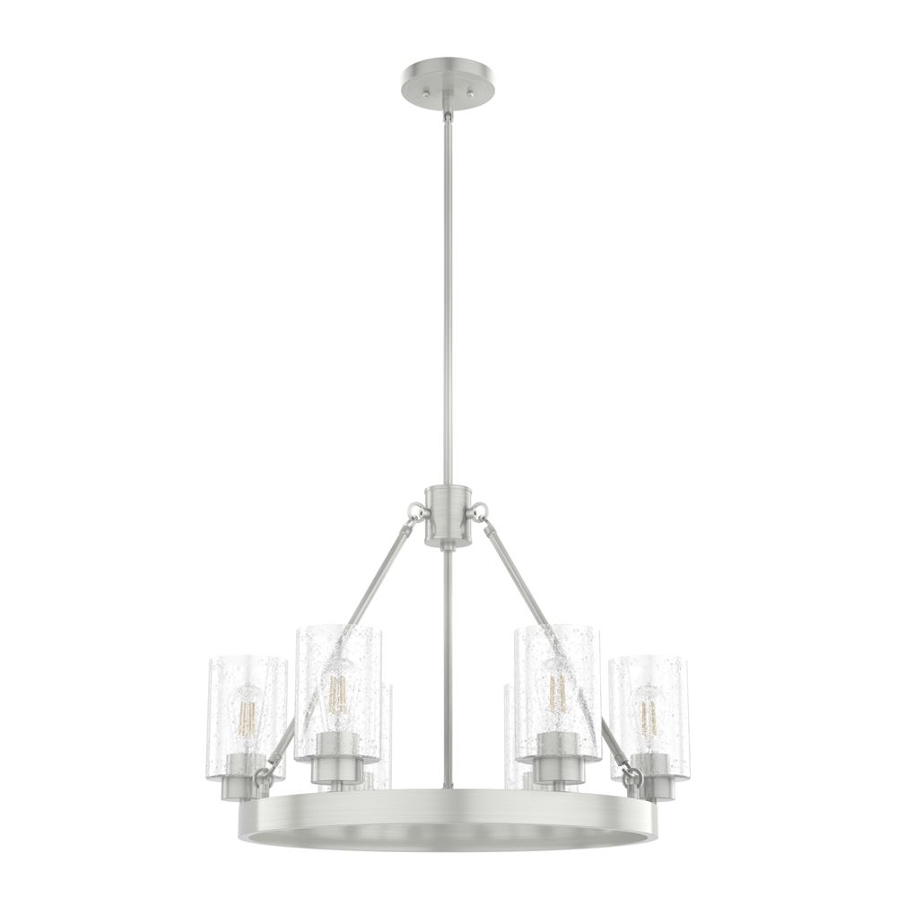 Illuminate your space in stunning fashion with the Hartland. Light reflects from this round chandelier's seeded glass shades in a striking way, whether from the bulb or sunlight. The Hartland 6-light chandelier delivers a revised classic look that complements a variety of styles and spaces.