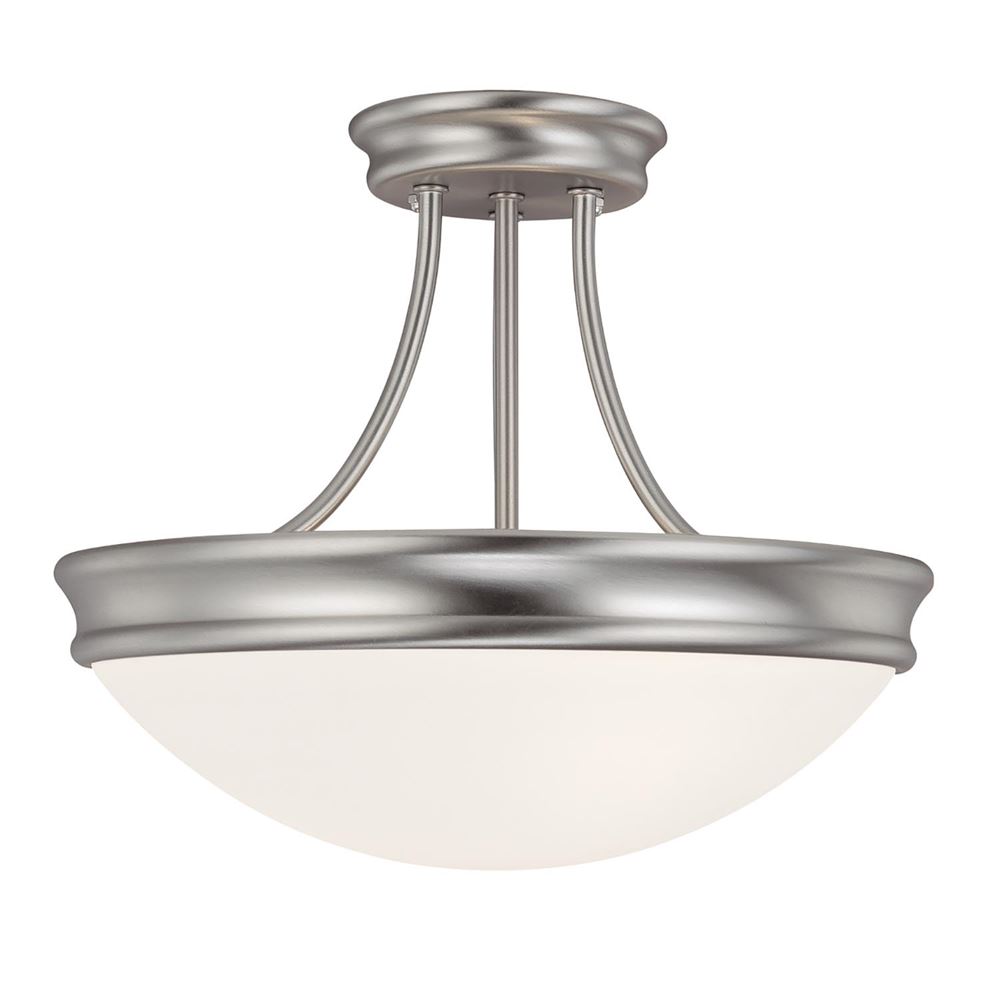 14" W x 12" H 3-Light Semi-Flush Mount in Matte Nickel with White Glass Shade
