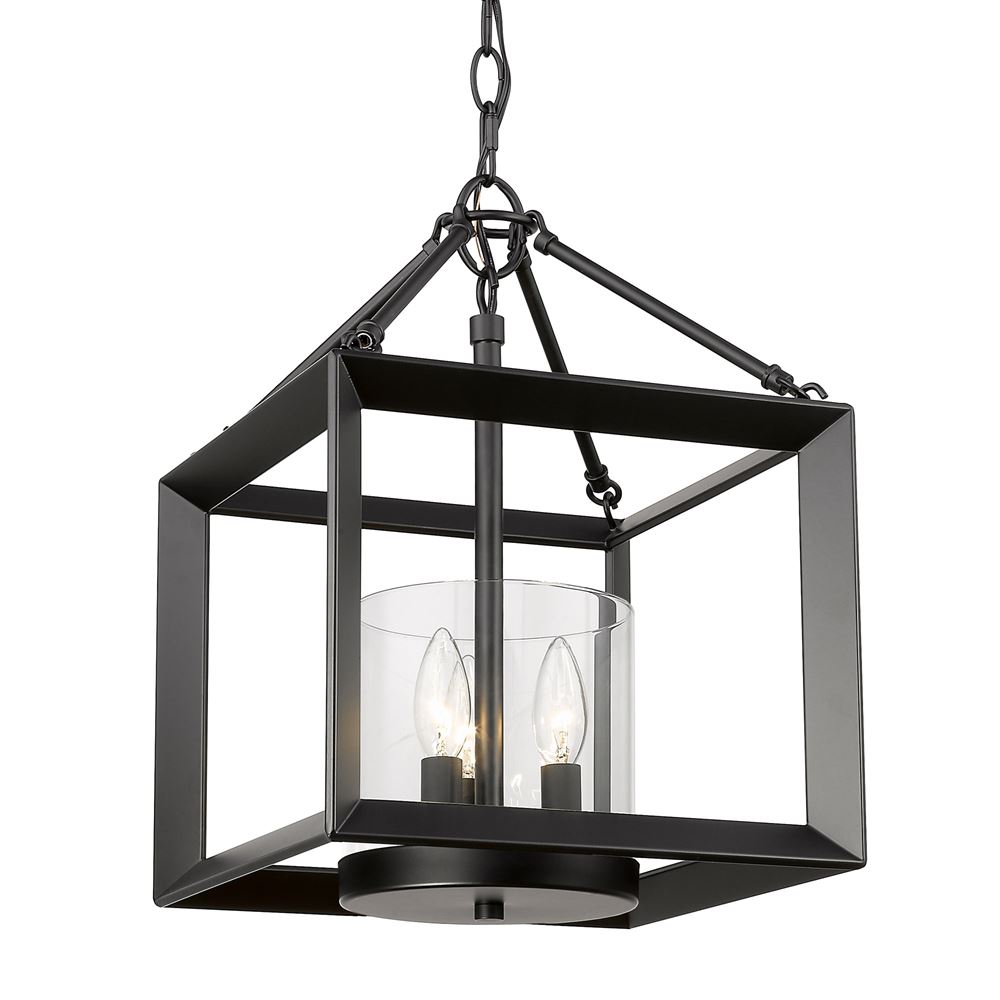 Modern lanterns featuring a handsome beveled cage design make an elegant statement in the Smyth collection. Clean geometry creates contemporary style with steel candles and candelabra bulbs encased in select glass options. The fixtures are offered in a variety of finishes. This 3-light mini chandelier creates a stylish focal point that can be mounted as a flush mount or hung as a pendant.