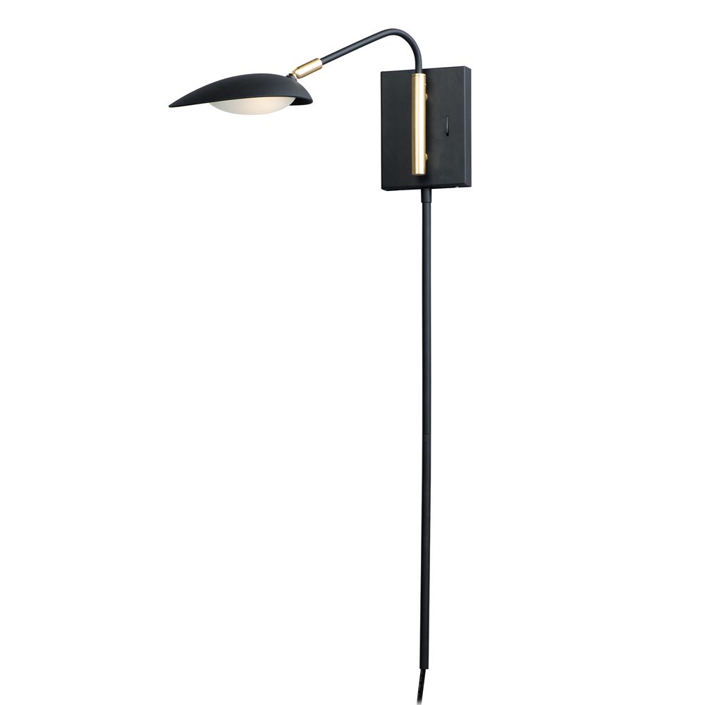 Inspired by Mid-Century Modern design, this collection features tapered hoods that conceal LED modules that can be adjusted to direct the light. The Black finish with contrasting Satin Brass accents softens the look to work in a broader range of design. The wall pin up lamps work great at bedside while the floor lamp version is at home next to a chair.