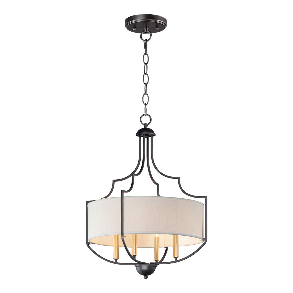 Drum shades of White Linen with an off-white liner are cradled in sculptural frames of Bronze with Antique Brass candle sleeves. The combination of finishes, textures, and materials provide a traditional look with depth and freshness.