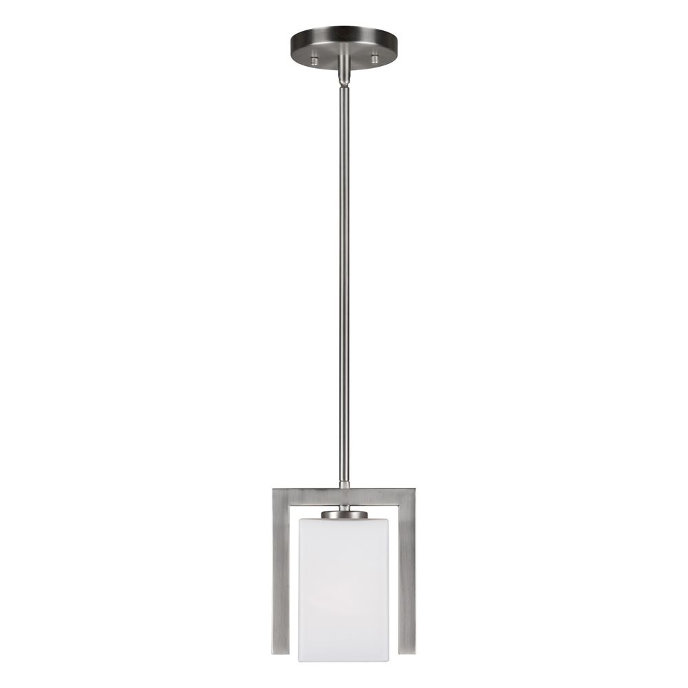 This 1-LT Square Glass Mini Pendant from Forte has a finish of Brushed Nickel and fits in well with any Transitional style decor.