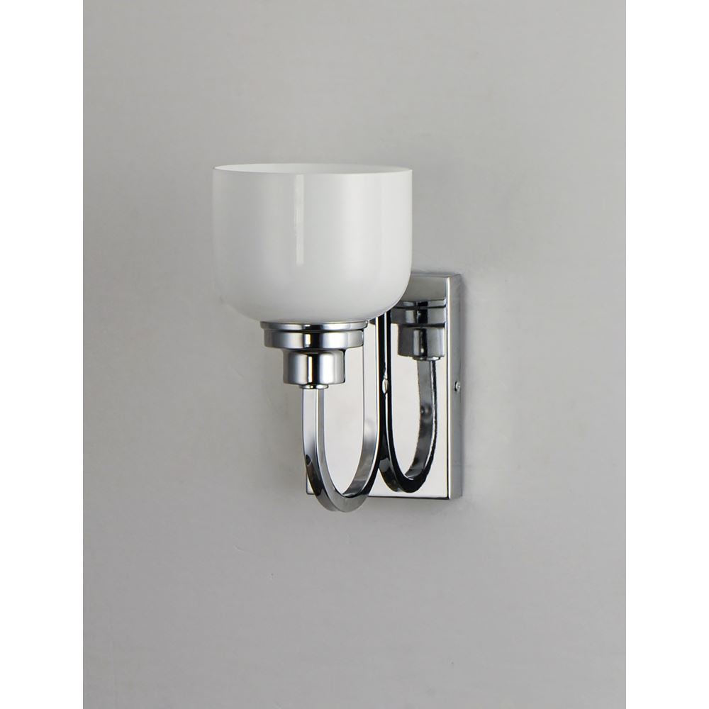 Square tube arms curve to form arcs of Polished Chrome in an interesting and unique fashion. White opal glass shades complete this clean design and provide a soft even illumination. Can be installed up or down.