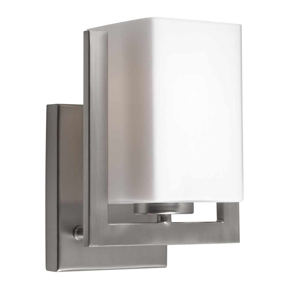 This 1-LT Square Glass Wall Sconce from Forte has a finish of Brushed Nickel and fits in well with any Transitional style decor.