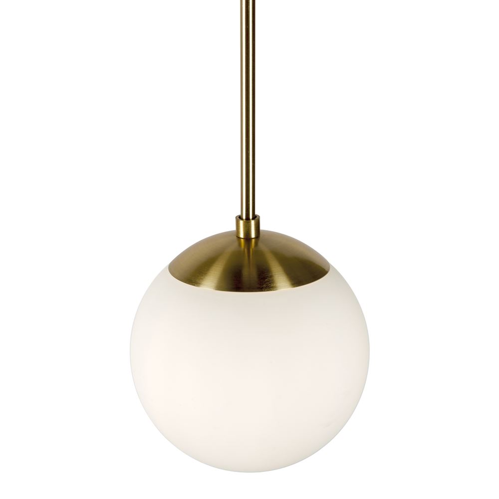 The Selene transitional stem hung pendant with satin opal globe glass shade comes with soft gold finish steel hardware and is also available in brushed nickel and black finish steel. The swivel canopy allows for installation on sloped ceilings. This fixture is suitable for kitchen islands, bar areas and bedrooms. This 1-light pendant measures 8.00 in. L x 8.00 in. W x 8.50 in.