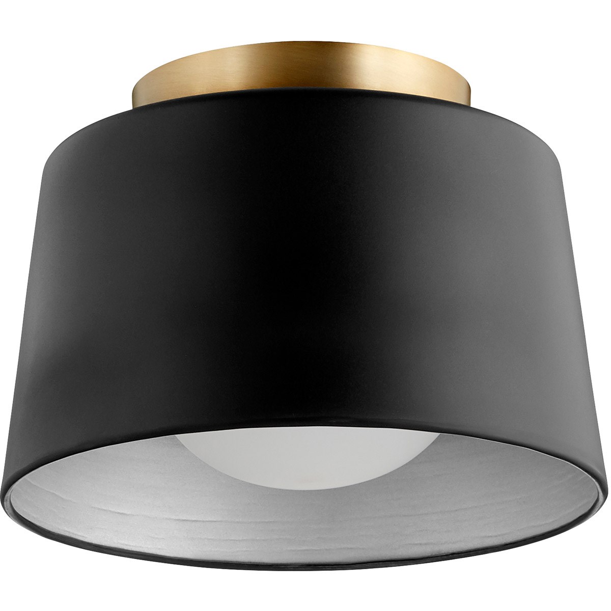 This Trapeze 11" Flushmount from Quorum has a finish of Noir and fits in well with any Transitional style decor.