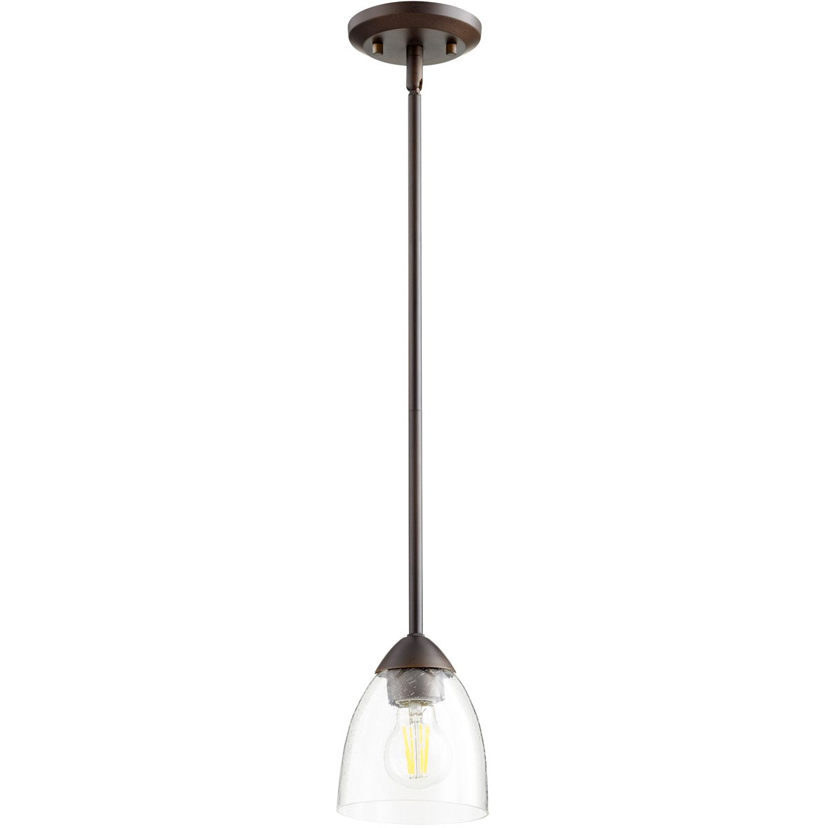 This Barkley Pendant from Quorum has a finish of Oiled Bronze W/ Clear/Seeded and fits in well with any Quorum Home Collection style decor.