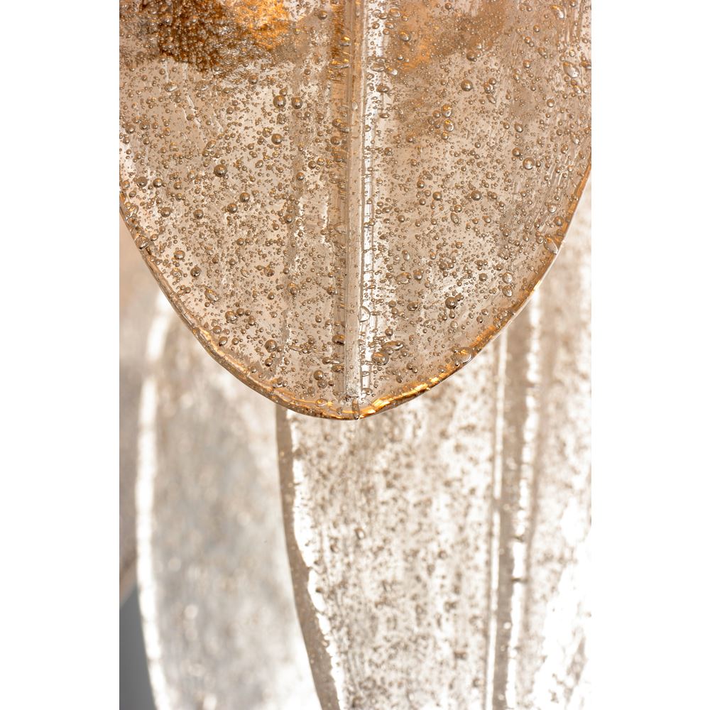 Hand formed glass petals suspend from a tiered frame of Polished Chrome. The glass is transparent yet cloudy, softly diffusing the light while creating a clean and crisp design.