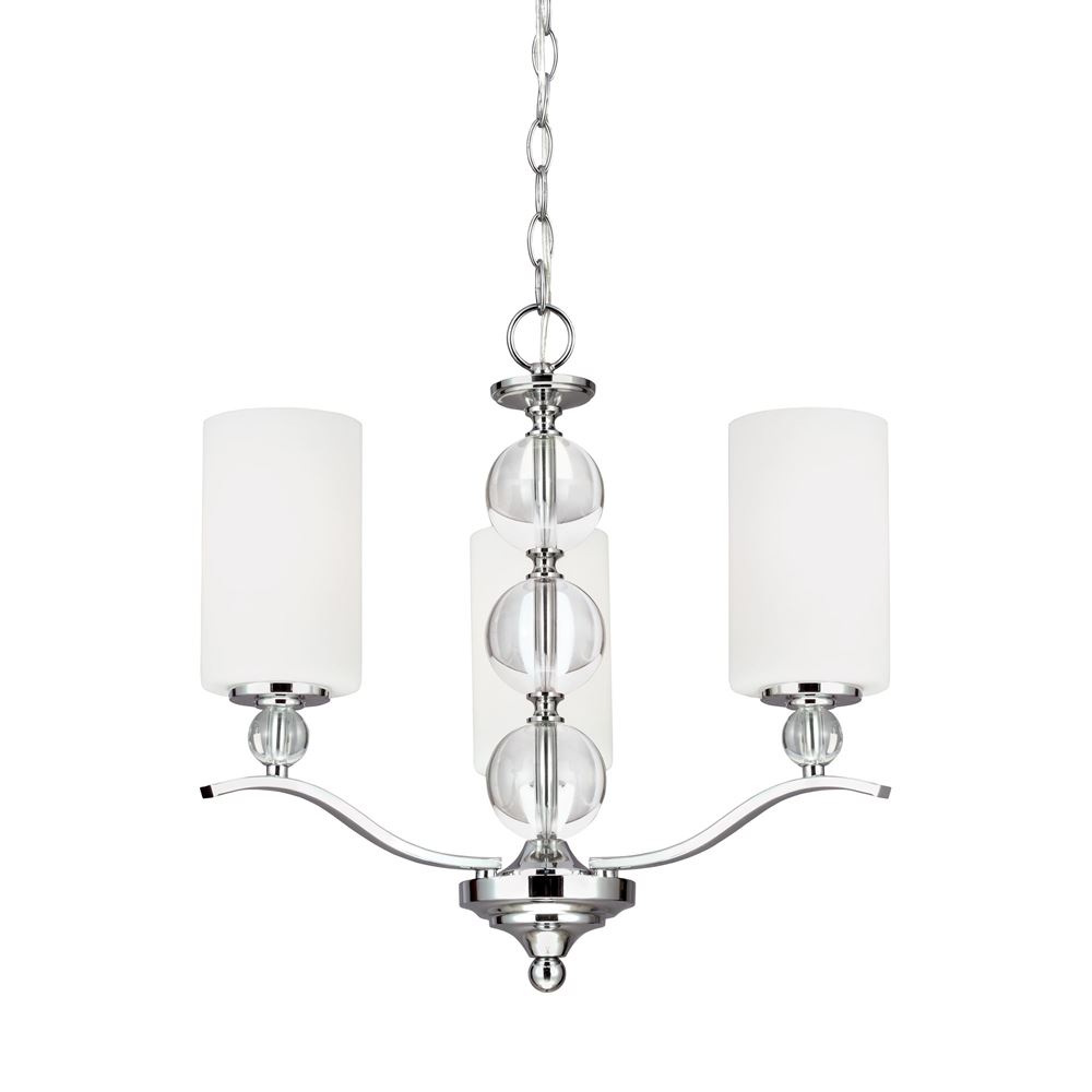 The modern Englehorn collection by Sea Gull Lighting brings a heightened sense of beauty through the use of dramatic and flawless optic crystal. Even with the crystal’s delicate appearance, the overall design makes a strong statement. Offered in a Chrome finish with Etched White glass.