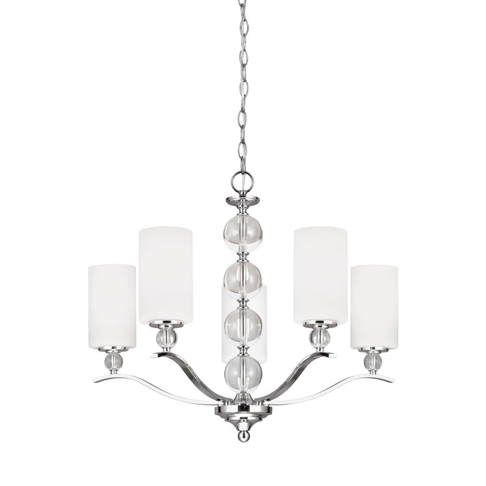 The modern Englehorn collection by Sea Gull Lighting brings a heightened sense of beauty through the use of dramatic and flawless optic crystal. Even with the crystal’s delicate appearance, the overall design makes a strong statement. Offered in a Chrome finish with Etched White glass.