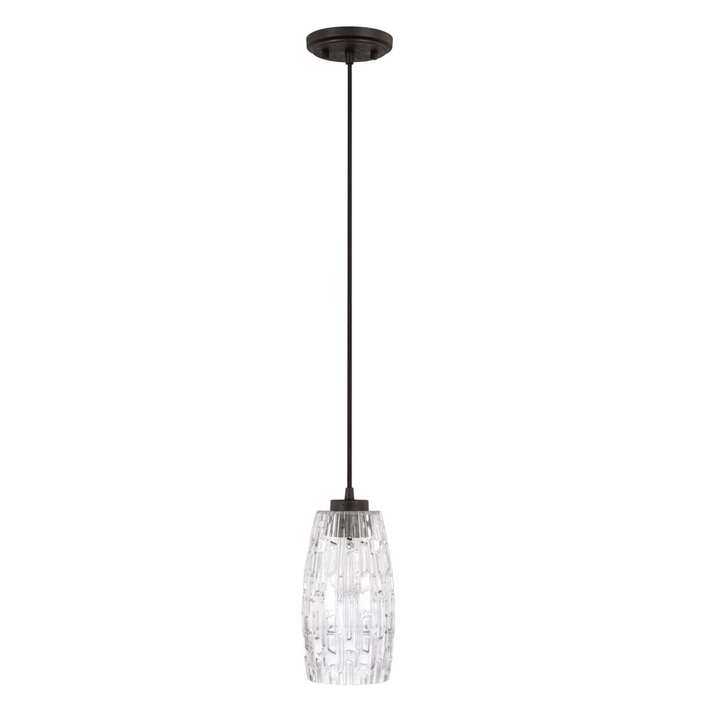 Glamorous, gorgeous, textured glass is a clear winner when it comes to pendant lights. Sleek and stylish with an embossed glass shade, this elegant pendant fixture embodies the perfect mix of form and function, providing task lighting where needed while elevating ambient style. The black cord and Black Iron finish offer stunning optical contrast.
