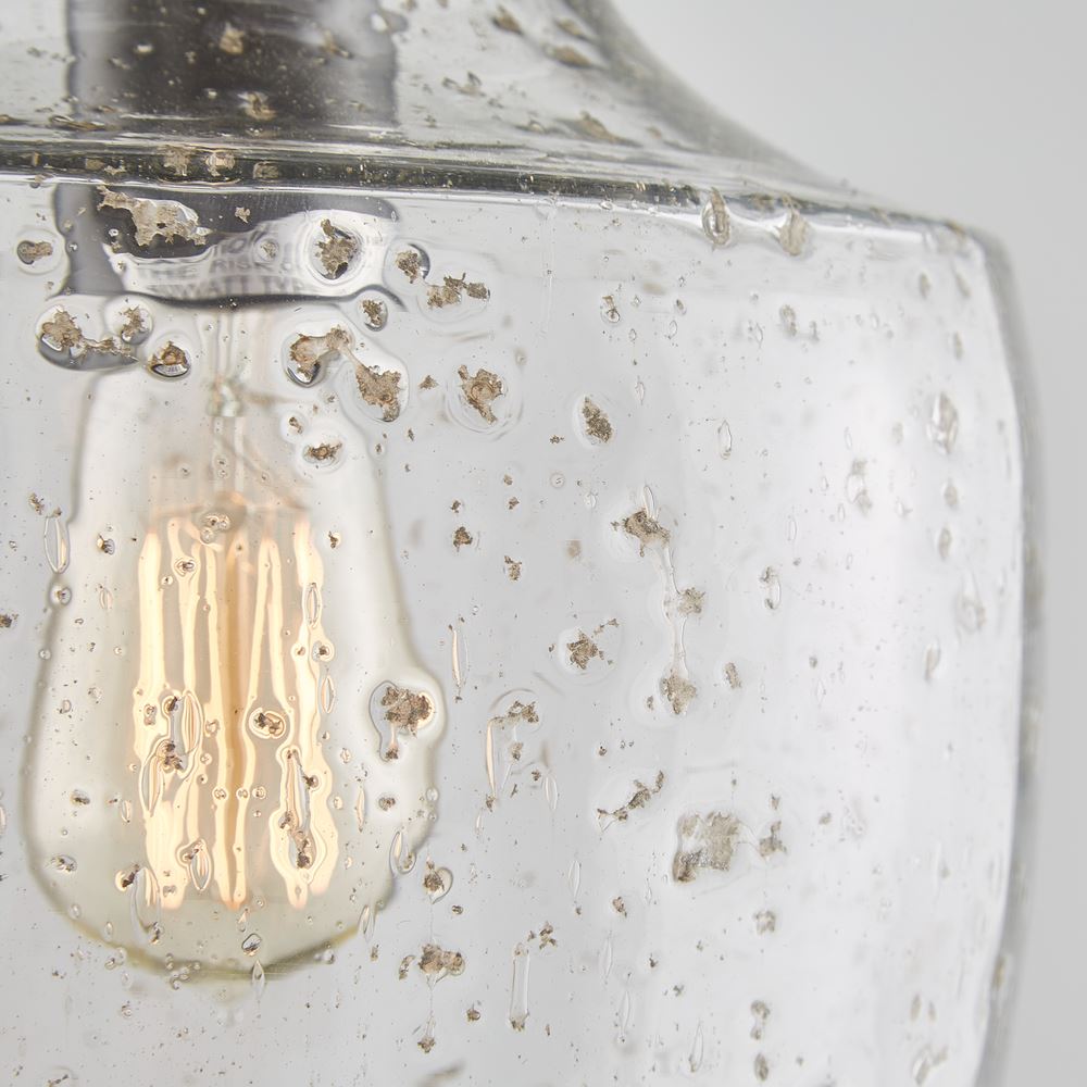 9" W x 14" H 1-Light Stone Seeded Glass Pendant in Pewter