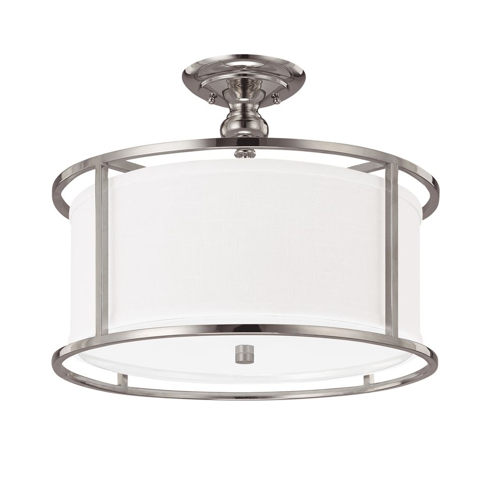 17" W x 13" H 3-Light Semi-Flush Mount in Polished Nickel with White Fabric Drum Shade