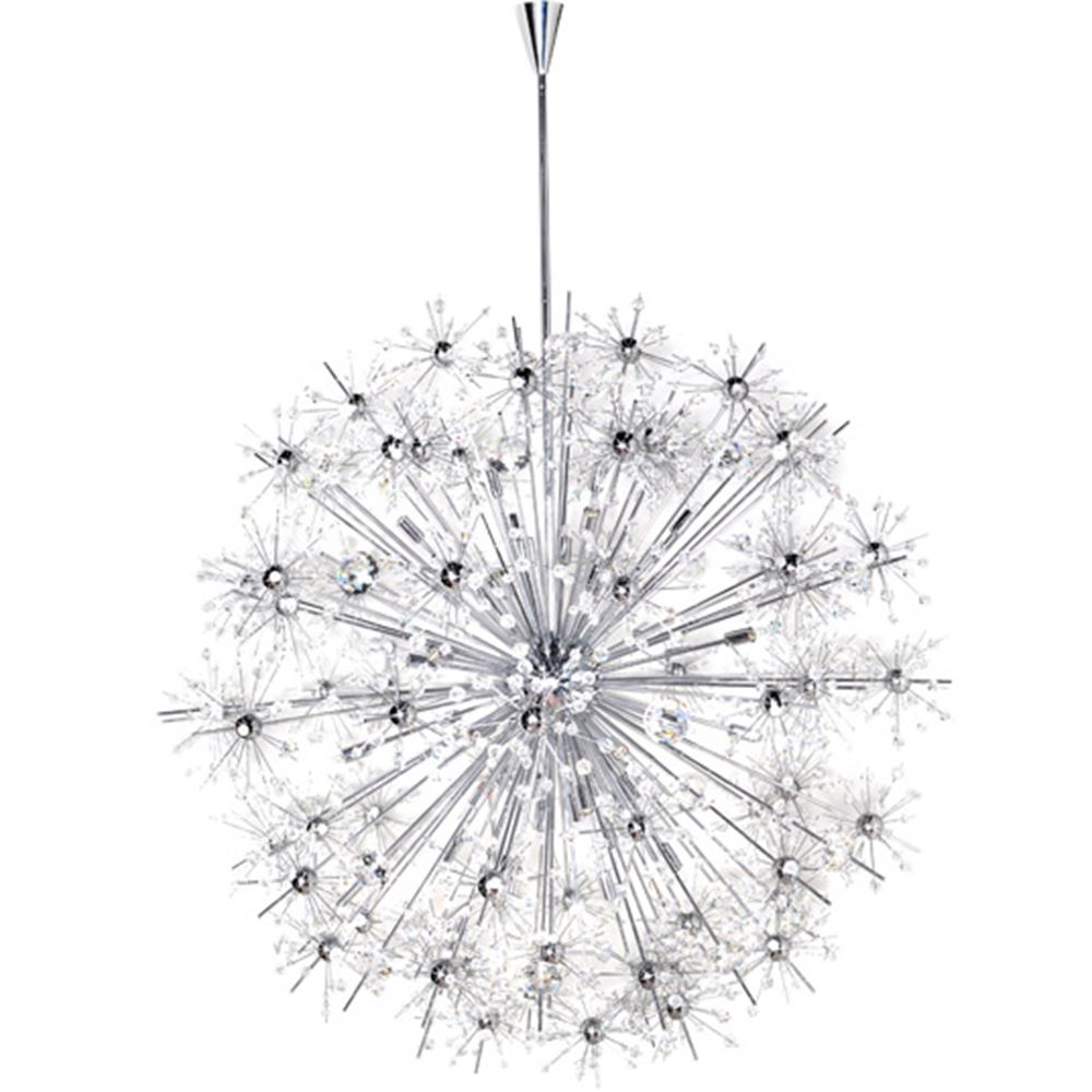 Spectacular display of Beveled Crystal beads of various sizes which are mounted on sculptures Polished Chrome metal formations which will sure to be the focal point of your room. The high power Xenon bulbs add sparkle to the crystal while producing a natural white light.
