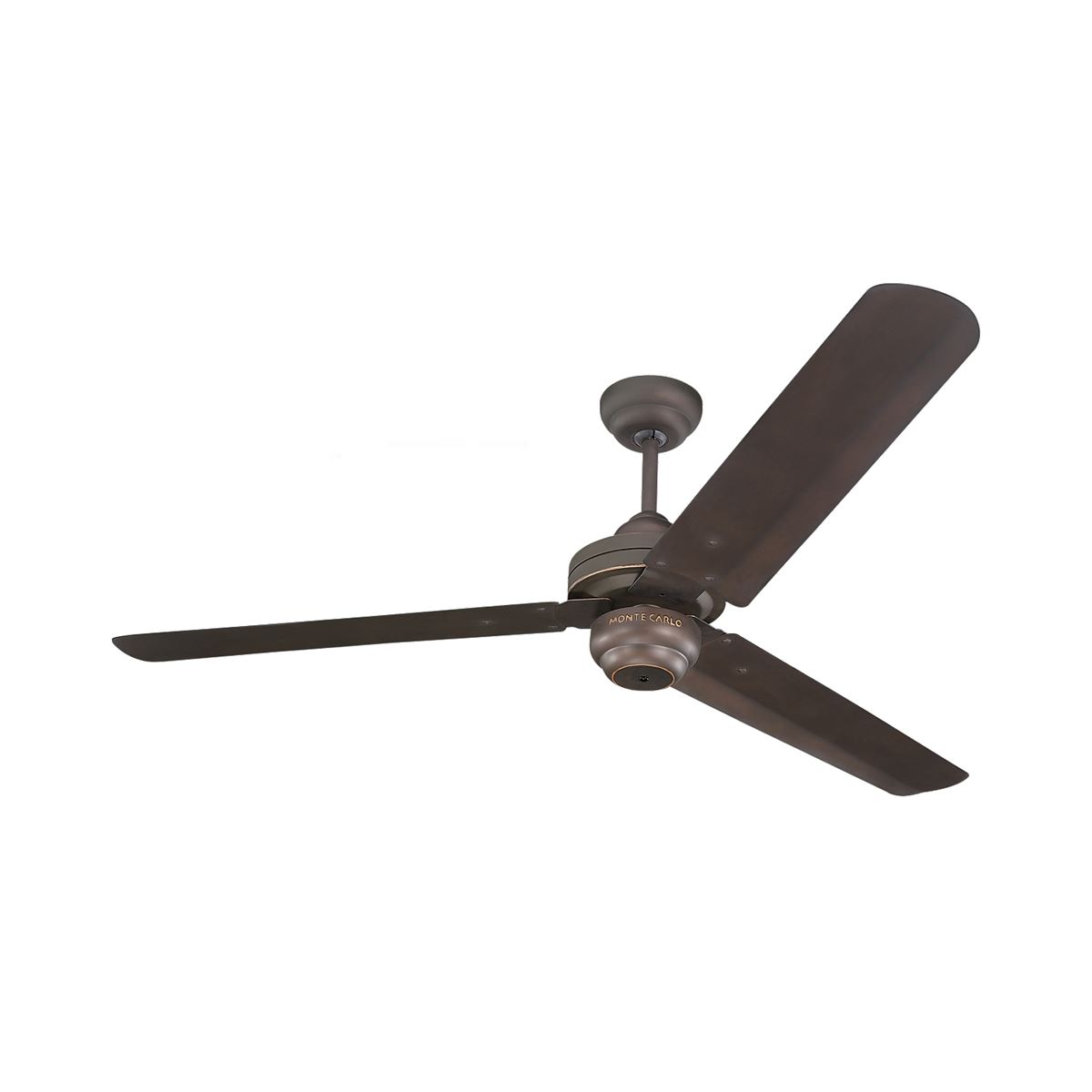 With its minimalist, modern aesthetic, the Studio ceiling fan by Monte Carlo is perfect for lofts or high-tech environments with tall ceilings. Three, dramatic, curved metal blades create the 54” blade sweep that give this fan its sleek look. Available in both Roman Bronze and Polished Nickel, each finish creates a wholly different look.