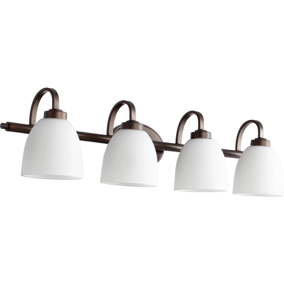 This Reyes 4-LT Vanity from Quorum has a finish of Oiled Bronze and fits in well with any Quorum Home Collection style decor.
