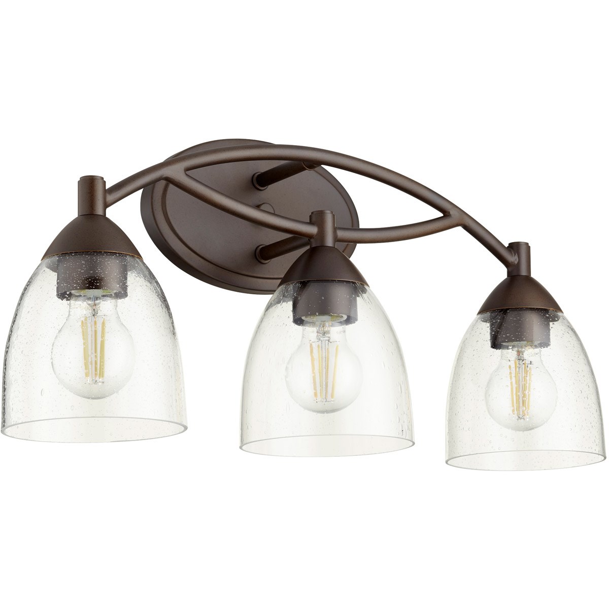 This Barkley Vanity from Quorum has a finish of Oiled Bronze W/ Clear/Seeded and fits in well with any Quorum Home Collection style decor.