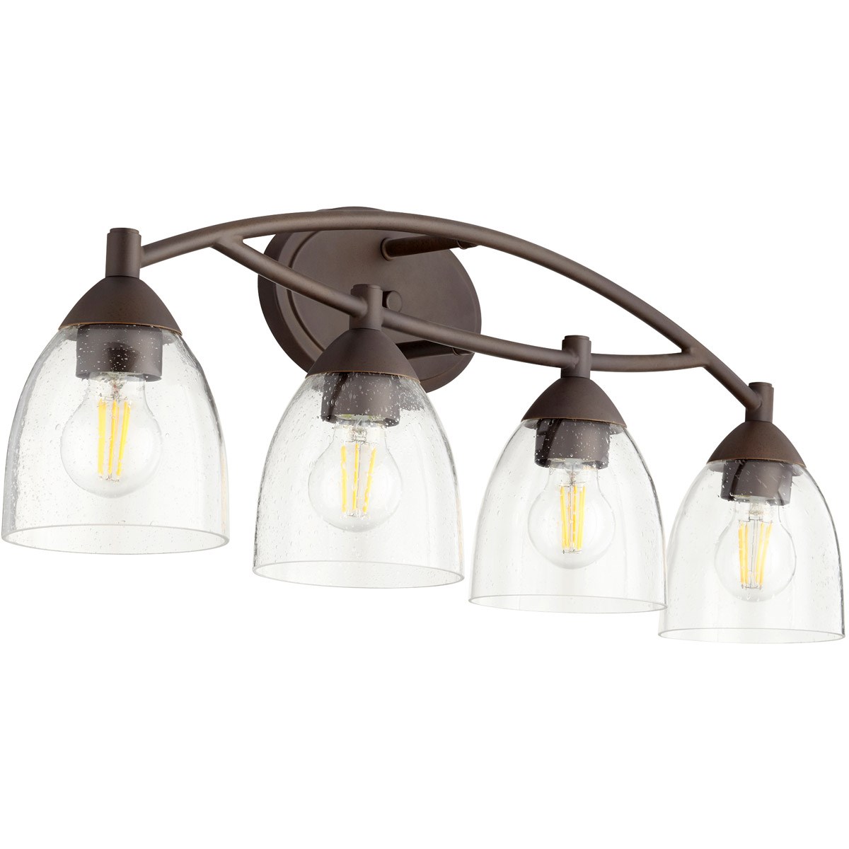 This Barkley Vanity from Quorum has a finish of Oiled Bronze W/ Clear/Seeded and fits in well with any Quorum Home Collection style decor.