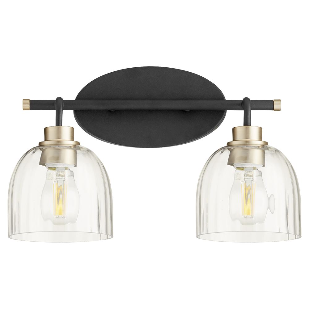 This 2-LT Bath Vanity Light from Quorum has a finish of Noir w/Aged Brass and fits in well with any Contemporary style decor.