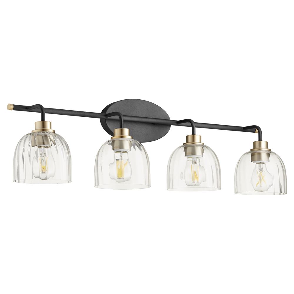This 4-LT Bath Vanity Light from Quorum has a finish of Noir w/Aged Brass and fits in well with any Contemporary style decor.