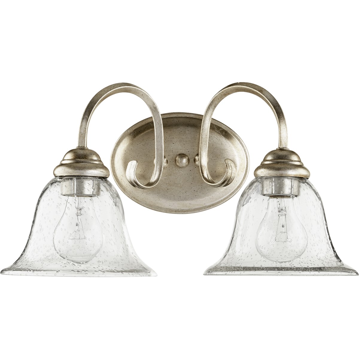 This Spencer 2-LT Vanity from Quorum has a finish of Aged Silver Leaf W/ Clear/Seeded and fits in well with any Quorum Home Collection style decor.