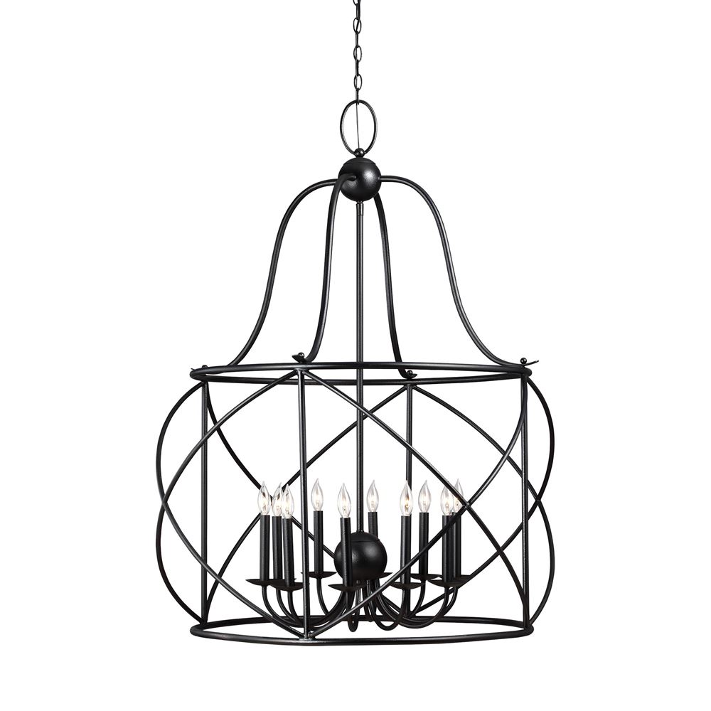 Touched with a Mediterranean influence, the Turbinio lantern pendant collection by Sea Gull Lighting features a dramatic cage-within-a-cage design. The textured Blacksmith finish creates a rustic yet sophisticated feel for the four-light, six-light, eight-light, and ten-light large-scale pendants.