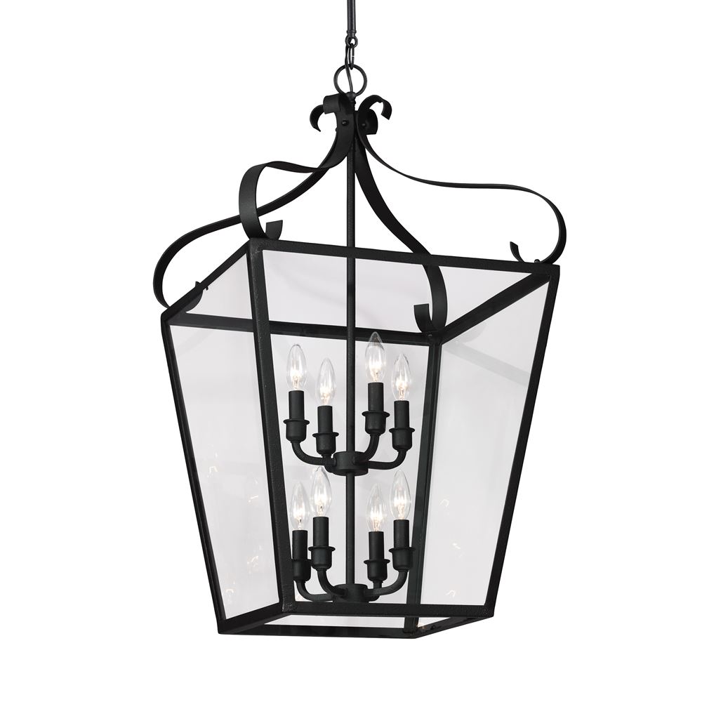 The traditional Lockheart lantern pendant collection by Sea Gull Lighting is inspired by historic carriage lights. While traditionally placed in entryways and halls, these types of fixtures are increasingly being selected by designers to enhance kitchen islands, dining areas and living rooms. Offered in either Heirloom Bronze or textured Blacksmith finishes, the substantial scale assortment includes four-light and eight-light pendants with Clear glass.