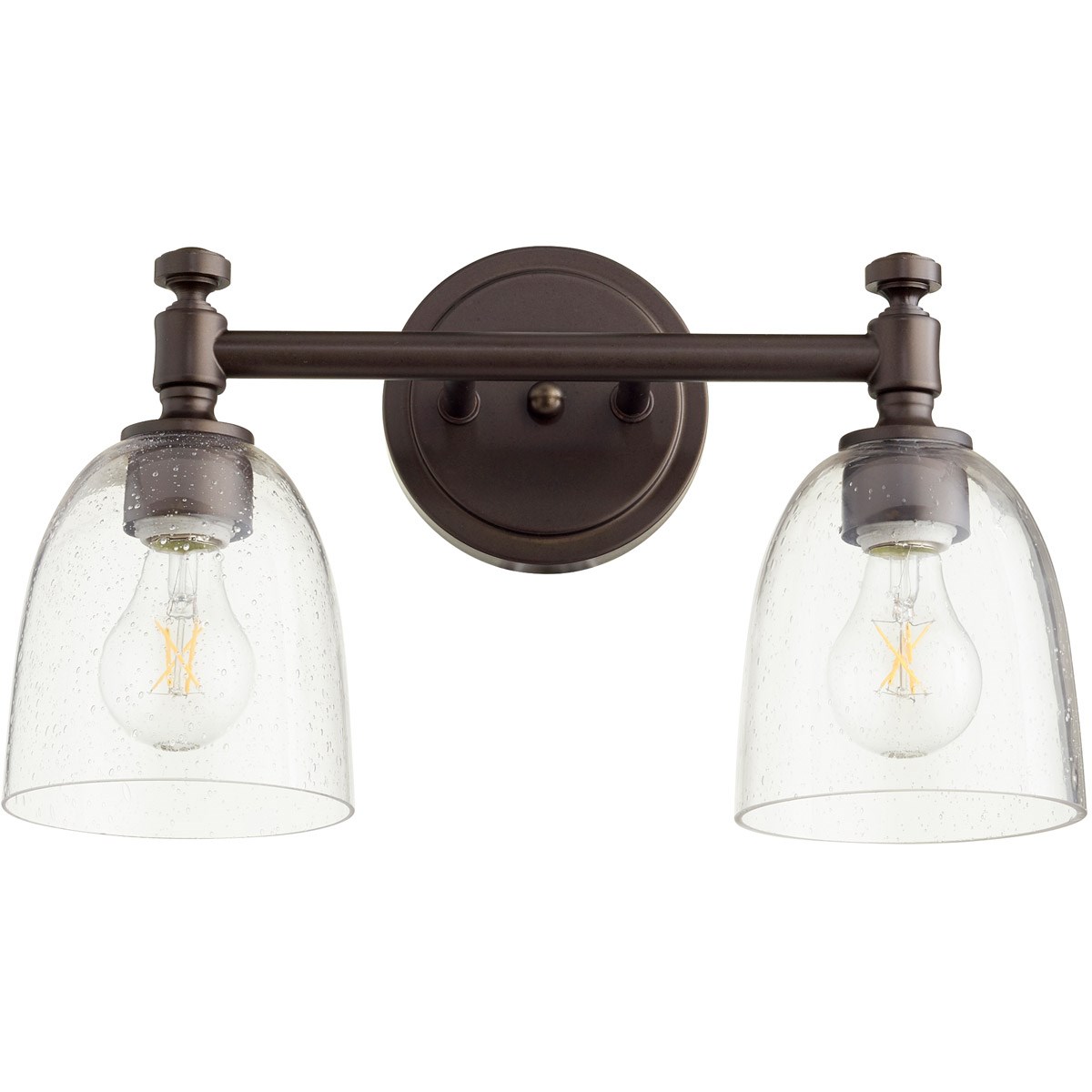 This Rossington Vanity from Quorum has a finish of Oiled Bronze W/ Clear/Seeded and fits in well with any Quorum Home Collection style decor.