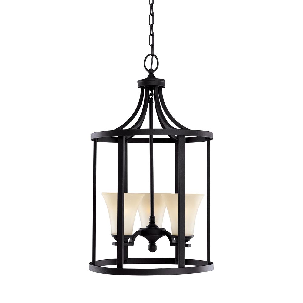 The Somerton lighting collection from Sea Gull Lighting mixes modern and traditional lines in harmony to create the perfect coupling of transitional contemporary styling. Bold angles are balanced with flowing curves, and a minimalist glass design. Offered in Antique Brushed Nickel finish with Satin Etched glass or textured Blacksmith finish with Café Tint glass.
