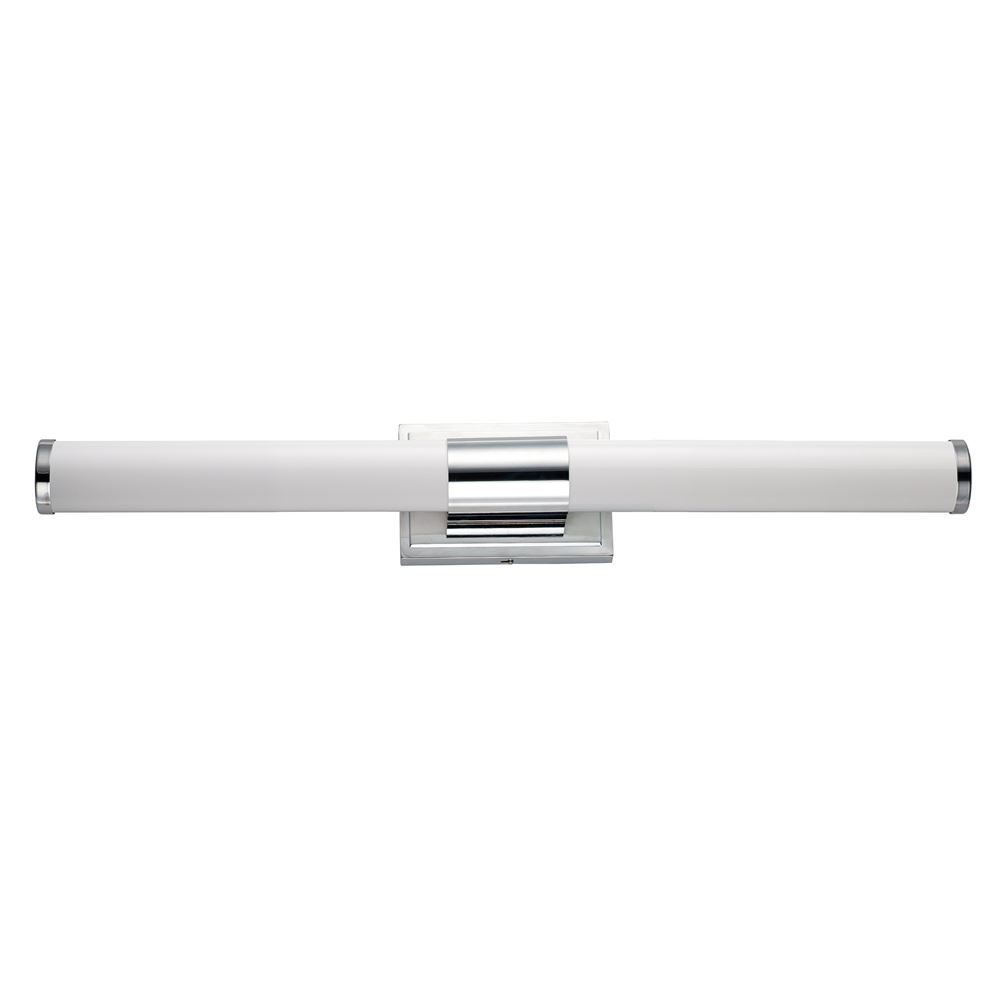 Cylinders of White cased glass are mounted onto a cast aluminum frame of Satin Nickel or Polished Chrome. LED modules evenly illuminate and provide soft yet ample illumination. Multi volt input is standard which allows for installation into commercial applications.