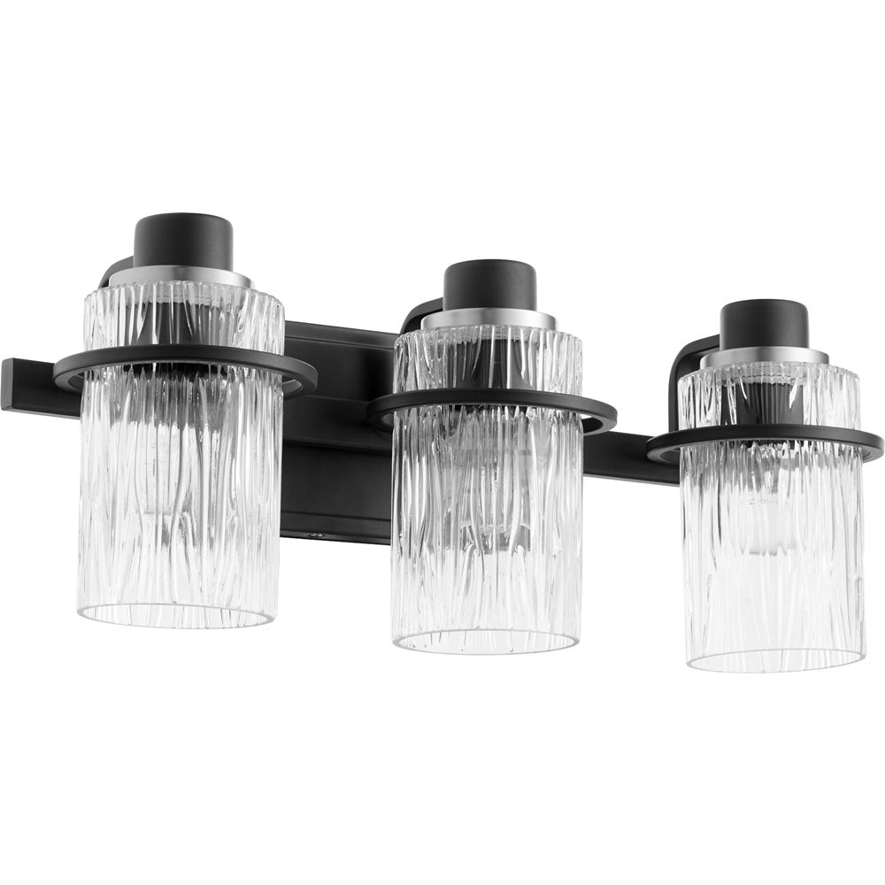 This 3-LT Bath Vanity Light from Quorum has a finish of Noir and fits in well with any Contemporary style decor.