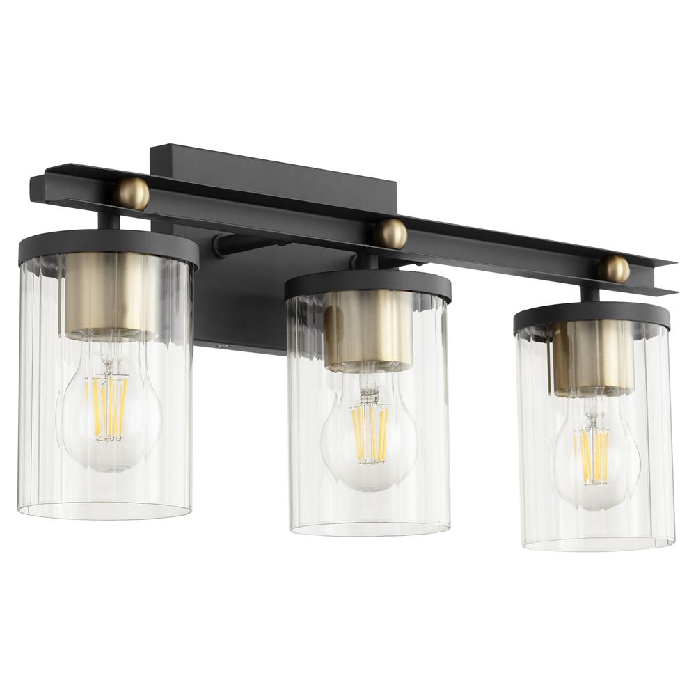 This 3-LT Bath Vanity from Quorum has a finish of Noir W/ Aged Brass and fits in well with any Transitional style decor.