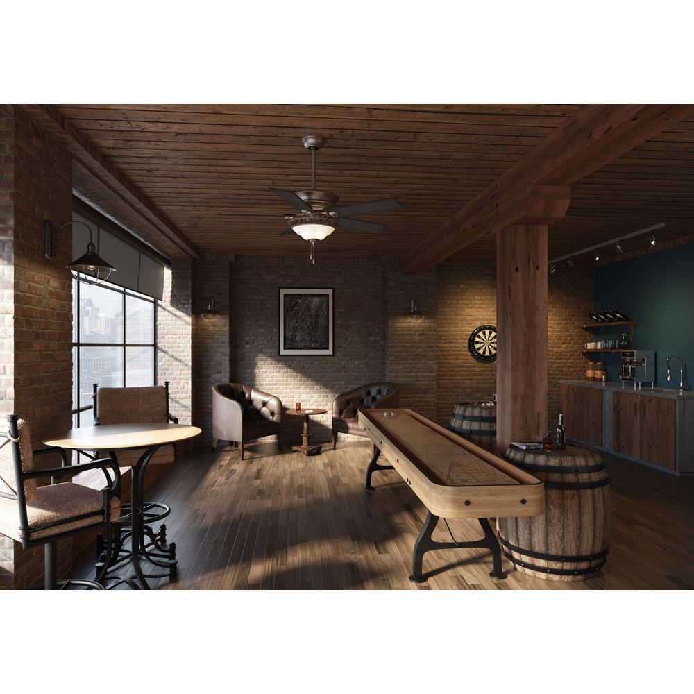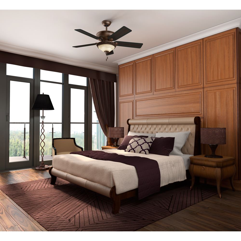 Part of our Hunter Designer Series, the Italian Countryside is an ornate fan that will bring a new level of class to any space in your home. The cohesive design has high-end finishes, reversible blades and elegant details on the fan body and glass fixture. With its 52-inch blade span, the Italian Countryside works well in standard or large rooms. This fan features a reversible, three-speed WhisperWind motor to deliver ultra-powerful air movement with whisper-quiet performance.