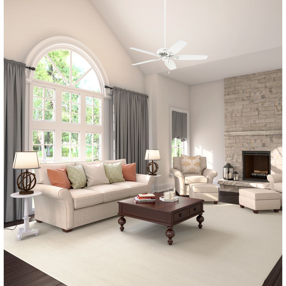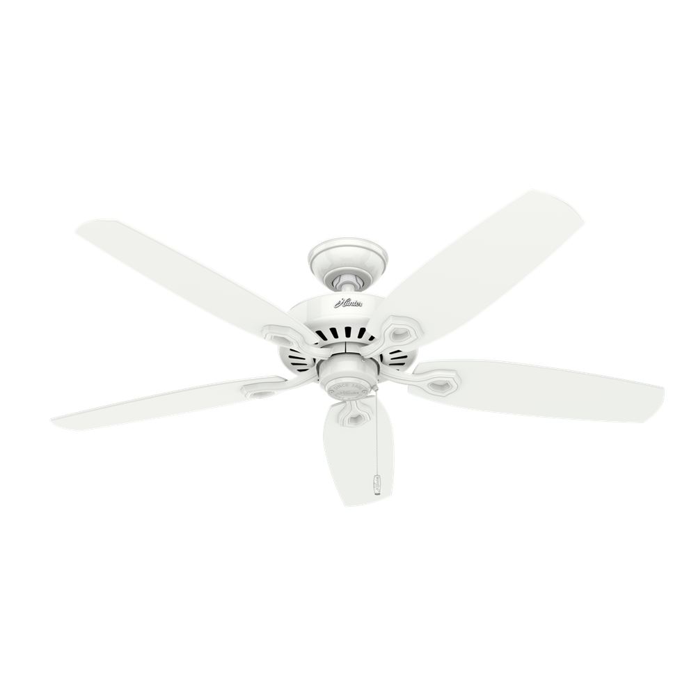 With a 52-inch blade span and four finishes to choose from, the casual, traditional style of the Builder Elite will complement standard or large rooms in your home without overpowering them. A mainstay in the Hunter product line, these ceiling fans without lights feature three-speed WhisperWind motor technology to deliver quiet and ultra-powerful performance.
