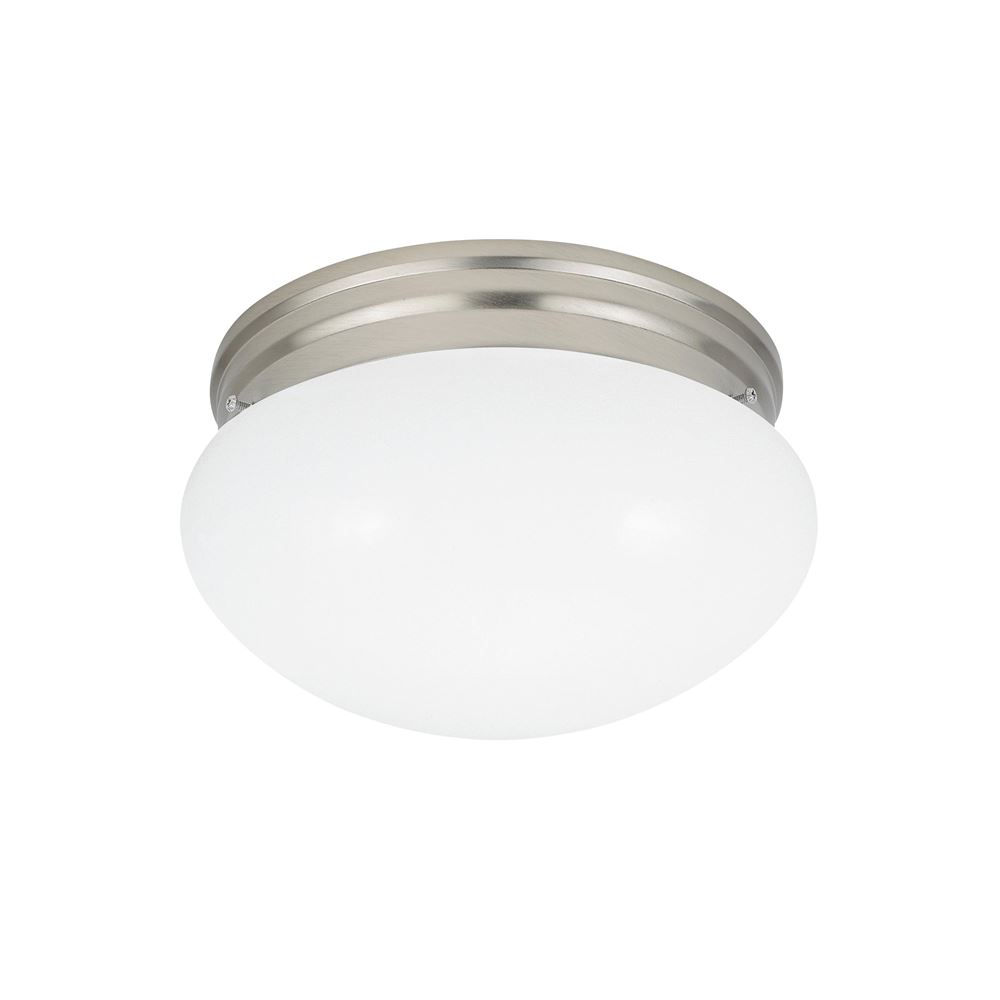 Webster wall and ceiling flush mount lighting fixtures by Sea Gull Lighting are ideal for use in foyers, hallways, bedrooms, utility work areas, stairways and many other locations – as they can be installed either has ceiling or wall fixtures. Offered in White, Heirloom Bronze and Brushed Nickel are both the one-light and two-light fixtures. All the fixtures feature Smooth White glass to softly diffuse the light for a warm glow.