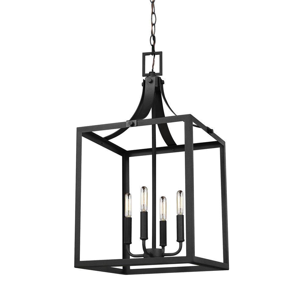 The Labette collection by Sea Gull Lighting is a charming pendant light collection, featuring a beautiful four-sided, lantern silhouette which is accented with rivet details and an updated square link at the crown, that will surely bring character to any setting. The open frame adds an updated lightness to this stately fixture which is often installed in multiples for a more dramatic effect. The two finishes Black and Heirloom Bronze will effortlessly accent any décor.