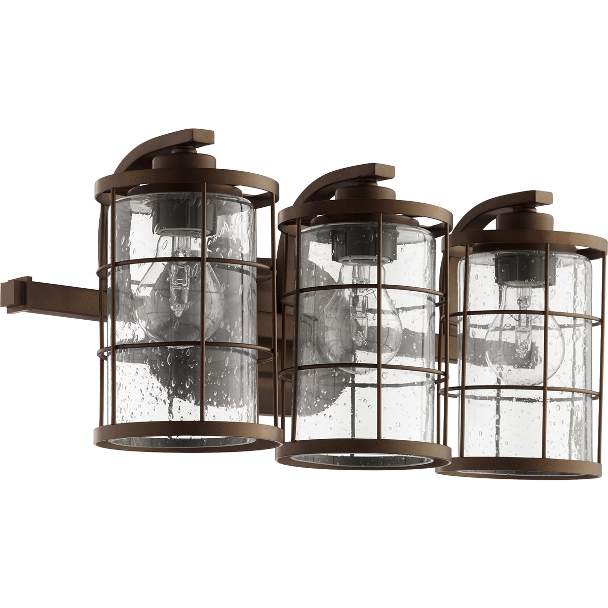 This Ellis 3-LT Vanity from Quorum has a finish of Oiled Bronze and fits in well with any Transitional style decor.
