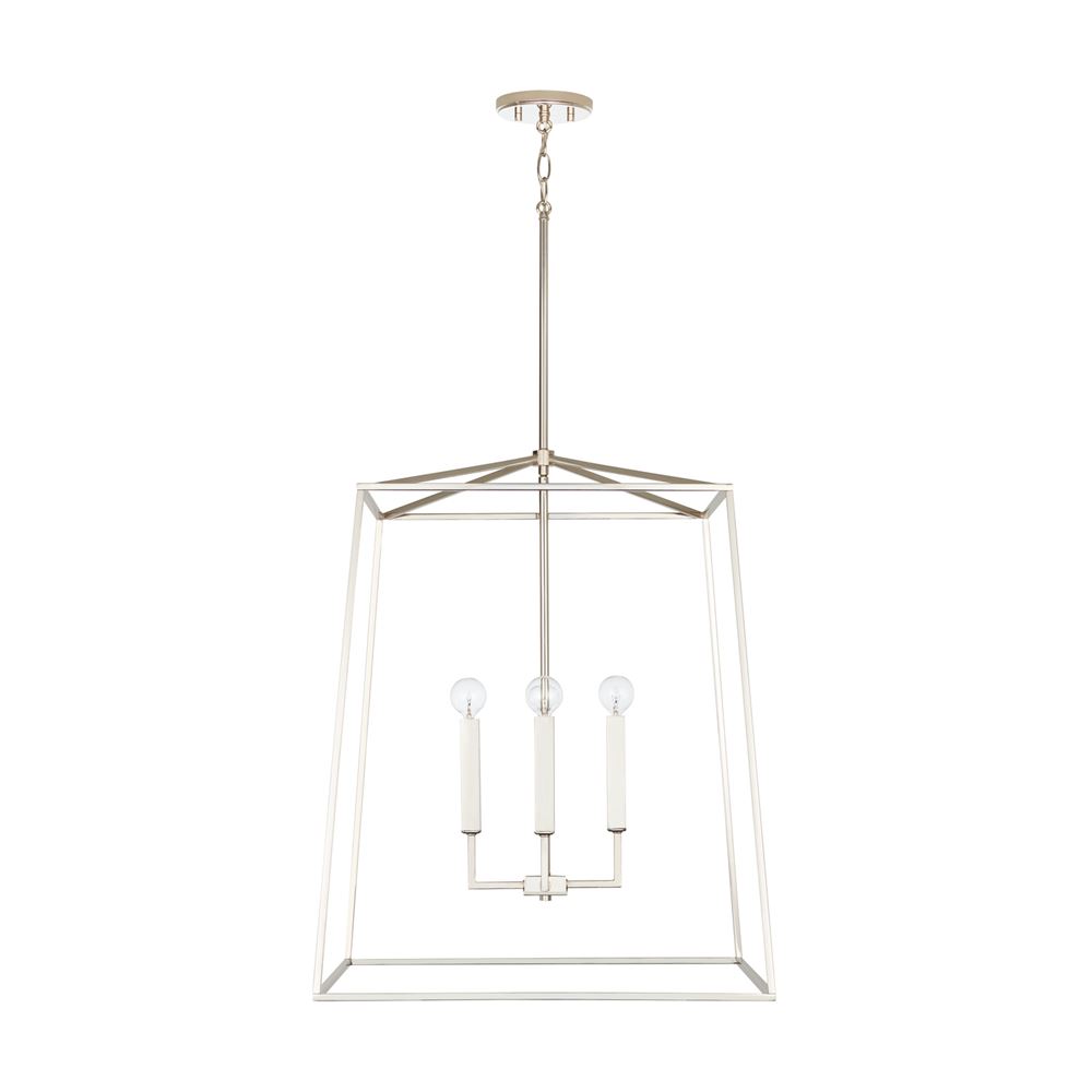 22" W x 27.5" H 4-Light Lantern Foyer Pendant in Polished Nickel