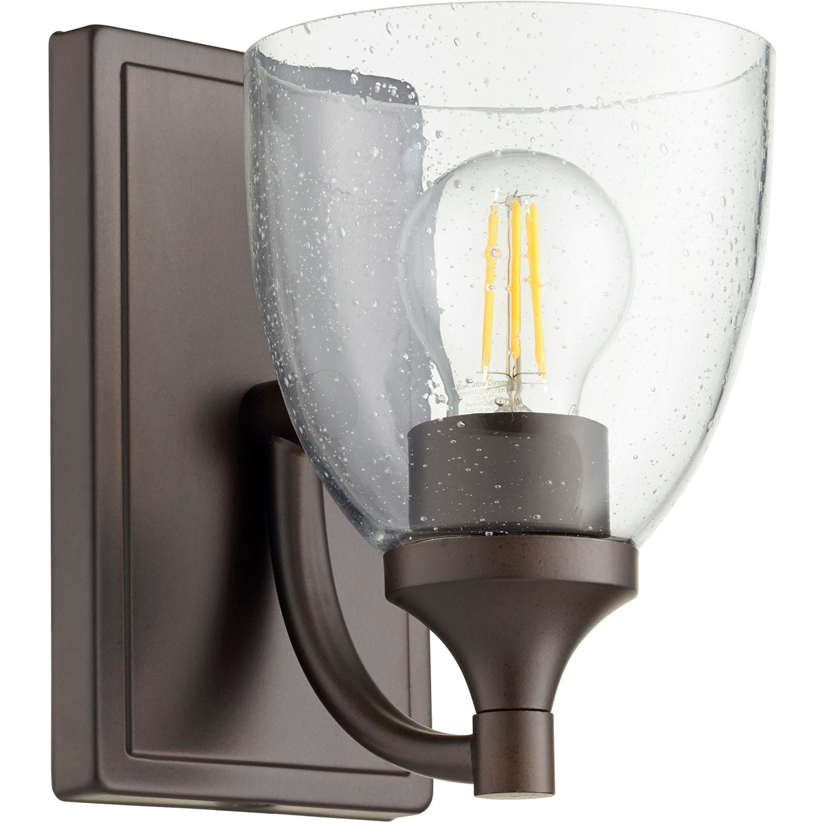 This Enclave Wall Mount from Quorum has a finish of Oiled Bronze W/ Clear/Seeded and fits in well with any Quorum Home Collection style decor.